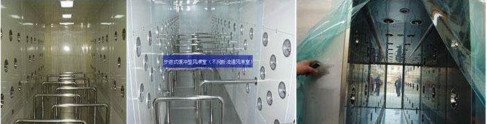 定義:為了減少由于人員進出所帶來的大量塵埃粒子,經(jīng)高效過濾器過濾后的潔凈氣流由可旋轉(zhuǎn)噴嘴從各個方向噴射至人身上,有效而迅速清除塵埃粒子,清除后的塵埃粒子再由初、高效過濾器過濾后重新循環(huán)到風淋區(qū)域內(nèi)。